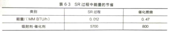 表6-3比较了氯乙烯含量为260mg/L的1MMSCFD的空气经SR循环净化到1mg/L时的性能与600K时使用标准氧化催化剂的性能。该例中的吸附剂-催化剂体系是含1.5%(质量分数)PdCl2的RB炭。从表6-3中可知用SR过程可使所需能量减少一个数量级。